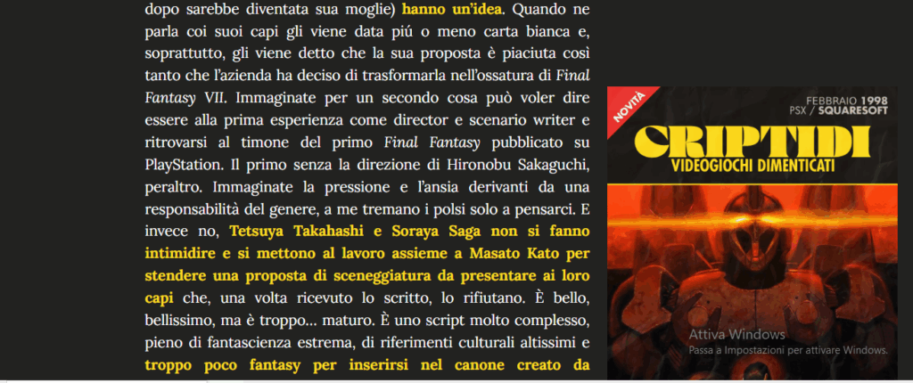 […] già parlato di Xenogear, citando, nella prima puntata di questa rubrica, la bella retrospettiva apparsa su Final Round. Ci ritorniamo con un secondo articolo, a firma di […]