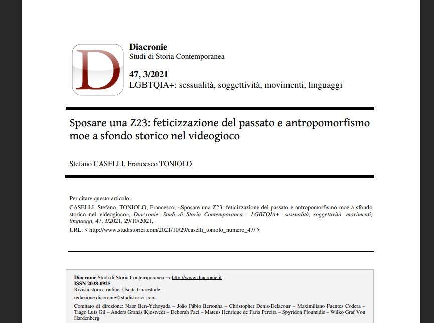 Sposare una Z23: feticizzazione del passato e antropomorfismo moe a sfondo storico nel videogioco Stefano CASELLI, Francesco TONIOLO