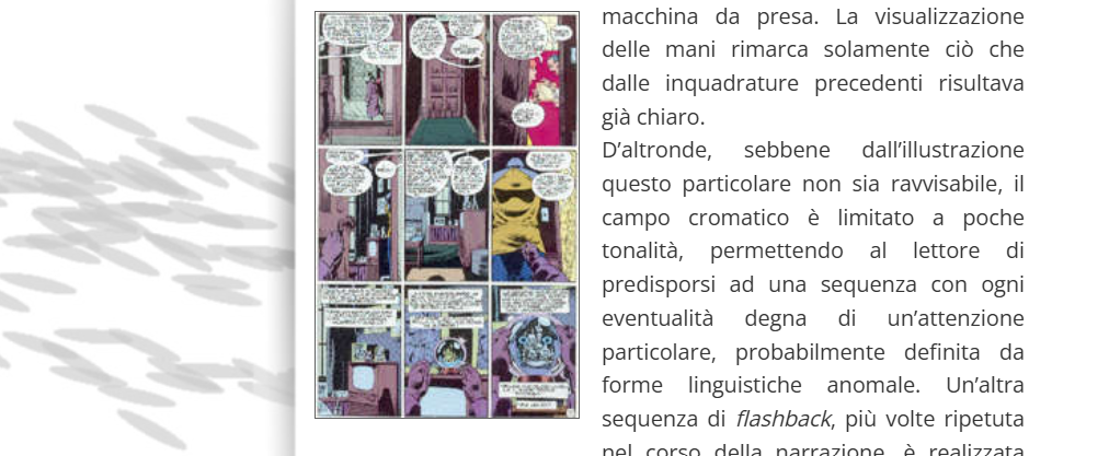 Se parliamo di gioco come capacità di stimolare le capacità sintetica dello spettatore/giocatore, non possiamo non fare un passo più in là e ampliare il nostro discorso all’arte che più di tutte sfrutta questa possibilità: il fumetto. In questo bell’excursus, Fabio Bonetti parte dai classici degli anni ‘80, Watchmen eIl ritorno del cavaliere oscuro, per mostrare come oltre la nota tesi della decostruzione dell’eroe, questi siano due pietre miliari del tentativo di avvicinare e contaminare la sintassi fumettistica con quella cinematografica.