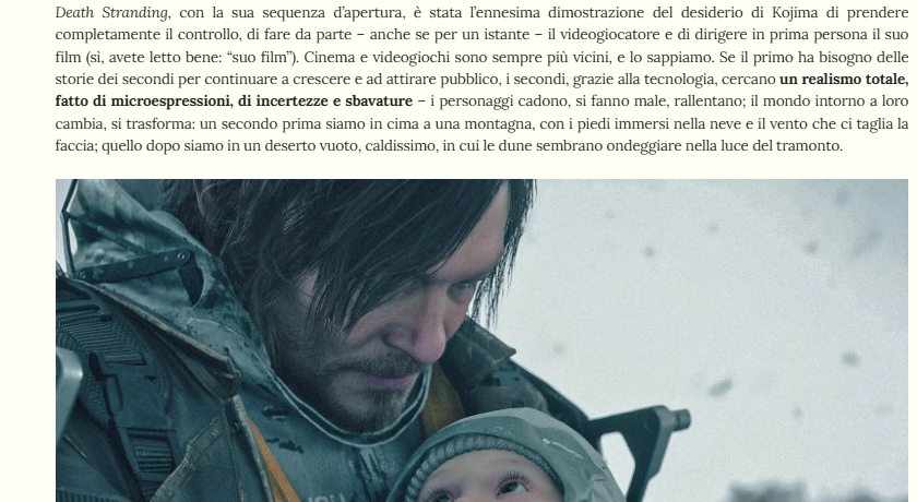 e  di seguito, invece, una sua intervista insieme al regista Nicolas Winding Refn, suo amico fraterno che ha anche prestato il suo volto, insieme ad un altro regista Guillermo Del Toro, per uno dei personaggi principali dei due titoli della saga di Death Stranding